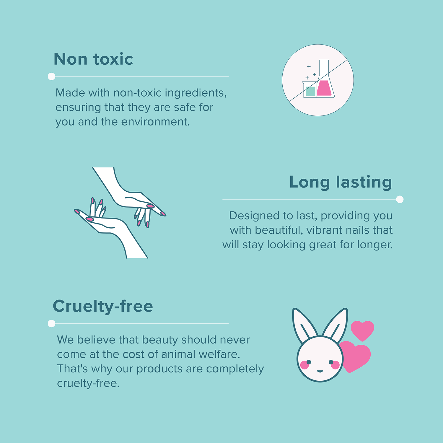 Top coat - After use base coat, use our top coat to develop the nail surface for your art work. This innovative formula is designed to build your nail surfaces, ensuring the clean nail surface for your art work.